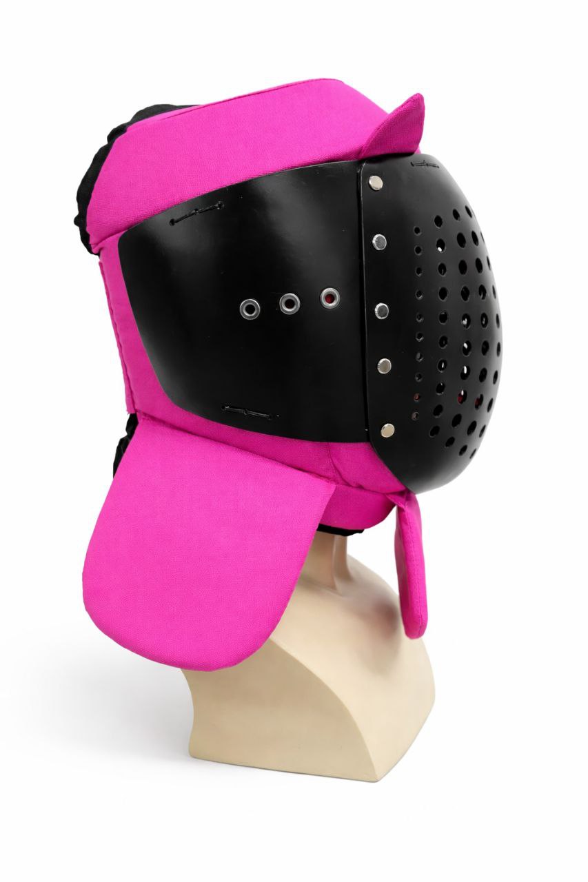 This helmet is based on our latest model, keeping the same lightweight and reliable construction. The main update here is the new visor design. This visor style has already become popular among fighters, as it offers a feel similar to “wolf ribs”, while providing more solid and consistent protection. It’s a great option for those who value comfort, or for anyone looking to try a more closed helmet without compromising safety. Additional elements protect the neck and the top of the head, offering well-rounded coverage. The helmet is adjustable to different sizes thanks to sliding Velcro fasteners and neck straps. Custom colours, patterns, and designs are available upon request, with pricing depending on complexity.