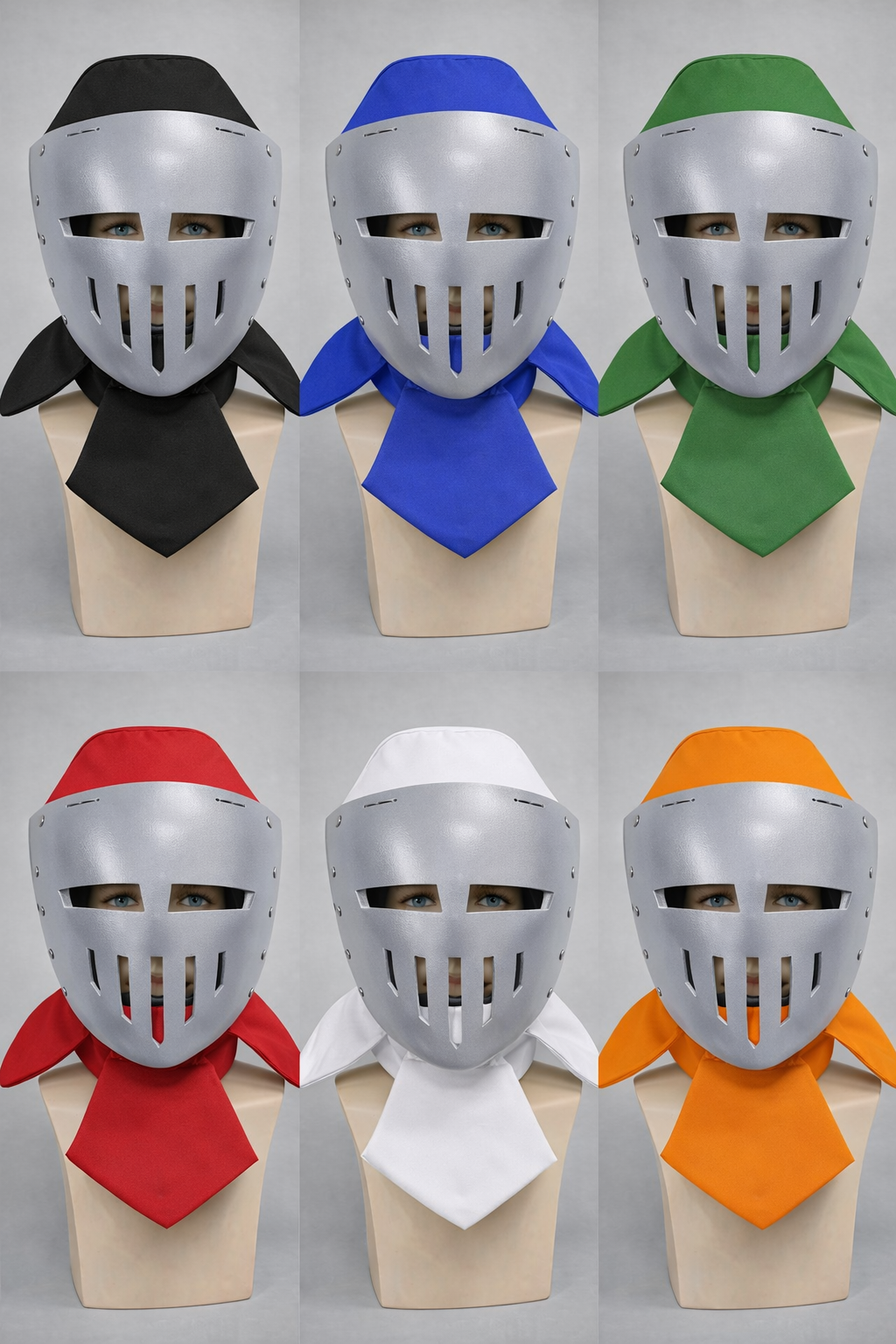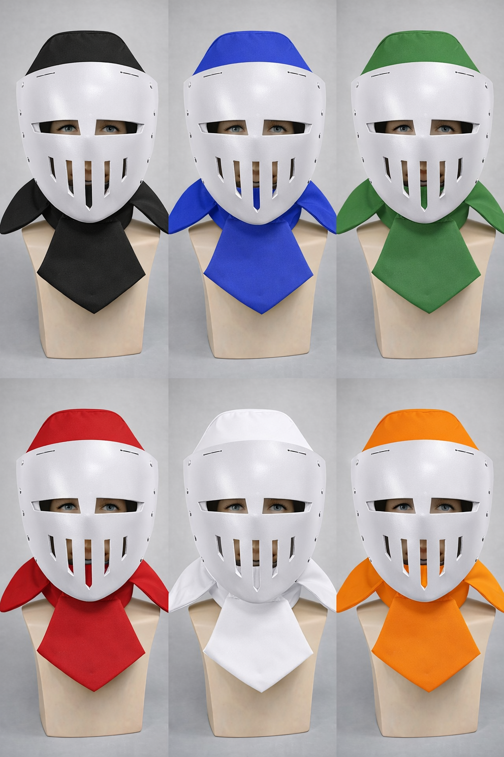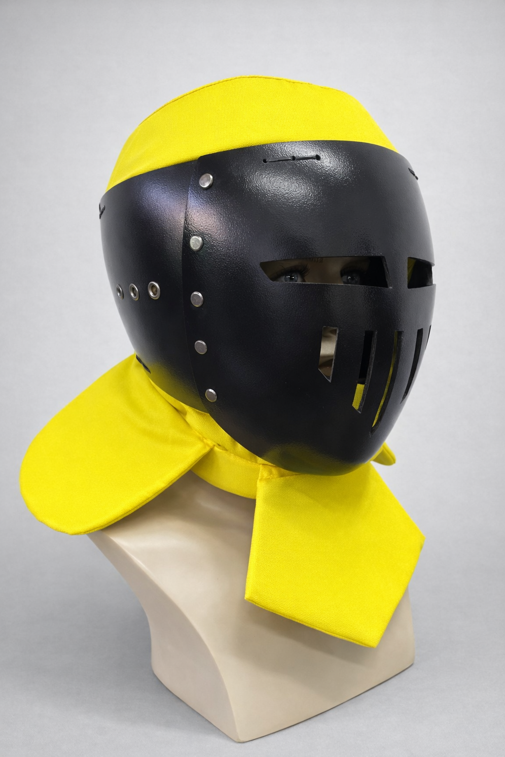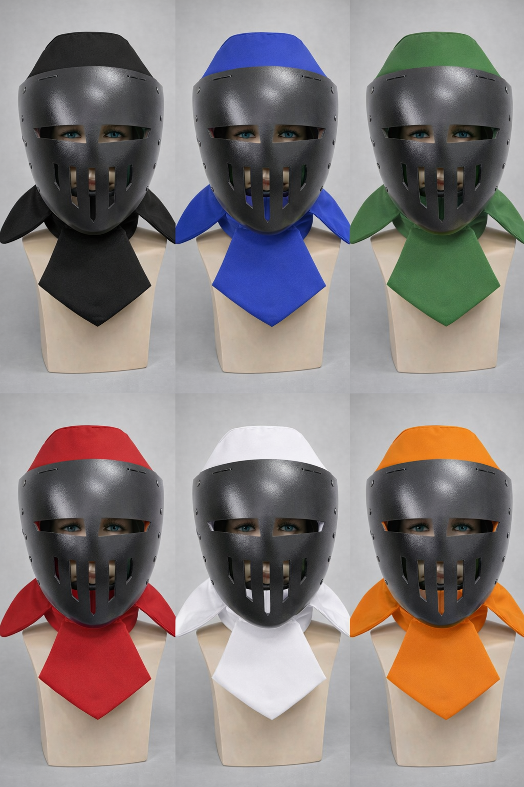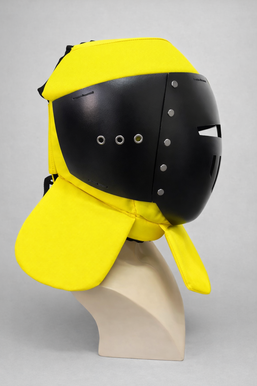 Additional elements close the neck and the top of the head, providing protection from all sides